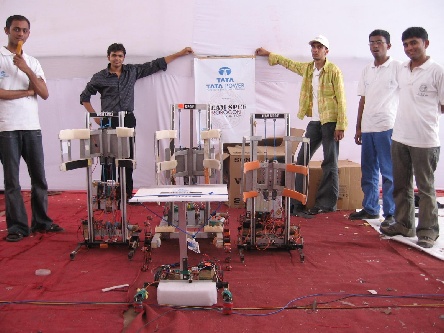 The rules of Robocon 2007 are built based on this legend of the Ha Long Bay Discovery. A team of robots (symbolizing dragons) will carry the blocks having the shape of cylinder (symbolizing pearls) to build various kinds of islands symbolizing “Ha Long”; and “Bai T u Long”. The first team to complete the building of “Victory islands” (in the shape of letter V in the centre of the Game Field) will be the winner. Duration of the game is three minutes.